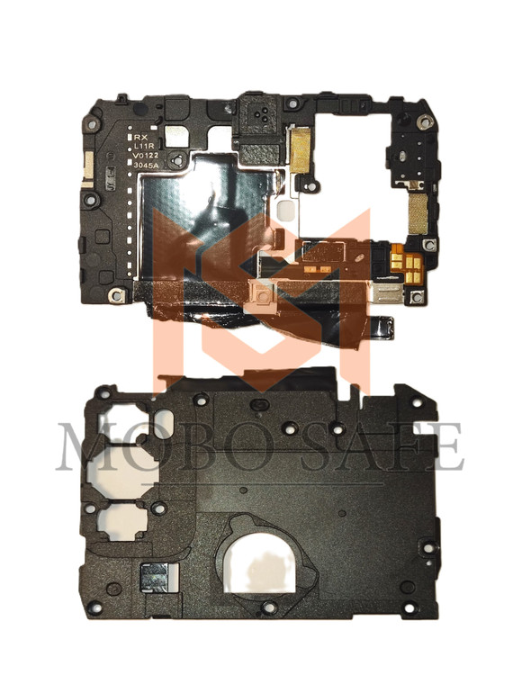 محافظ برد و فریم میانی یکی از قطعات حیاتی برای استحکام ساختار گوشی و حفاظت از مادربرد و سایر اجزای حساس است. این قطعهی روکاری (قطعه اصلی نصب شده توسط کمپانی شیائومی) علاوه بر ایجاد ساختار محکم، مجهز به برچسب دفع حرارت (آنتیهیت) بوده که به بهبود تهویه و کاهش دمای قطعات داخلی کمک میکند؛ در نتیجه عمر مفید دستگاه افزایش مییابد.